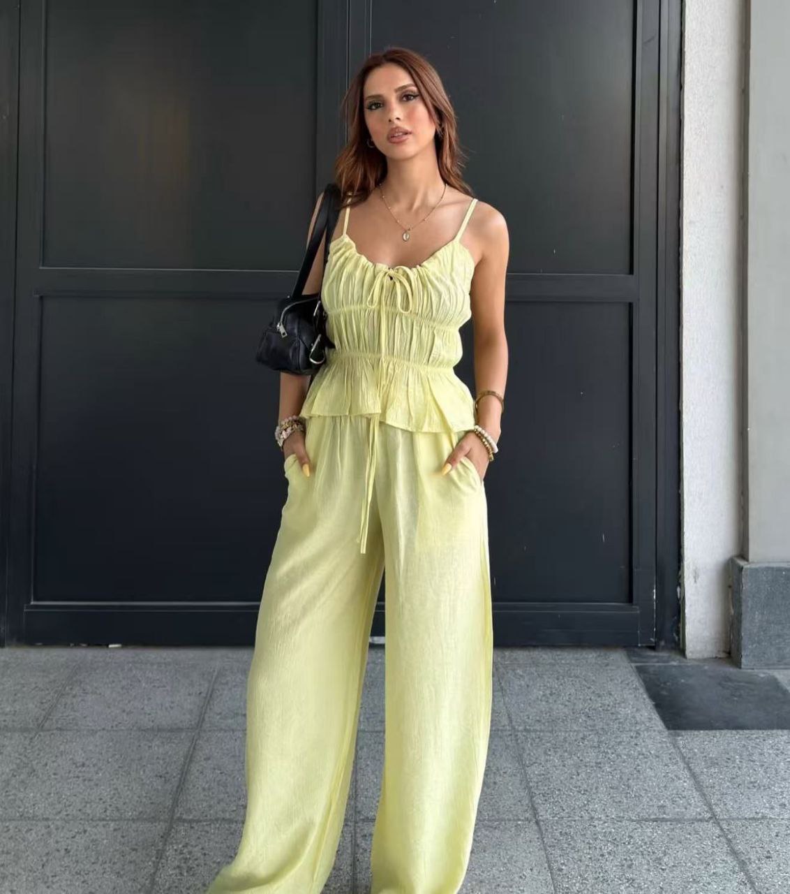 Il Completo Summer Vibe unisce eleganza e versatilità in un design moderno e raffinato. Composto da un top e un pantalone coordinati, questo completo è ideale per chi cerca uno stile alla moda senza rinunciare al comfort. Perfetto per occasioni formali o casual, garantisce un look sofisticato e contemporaneo.
