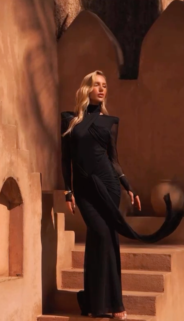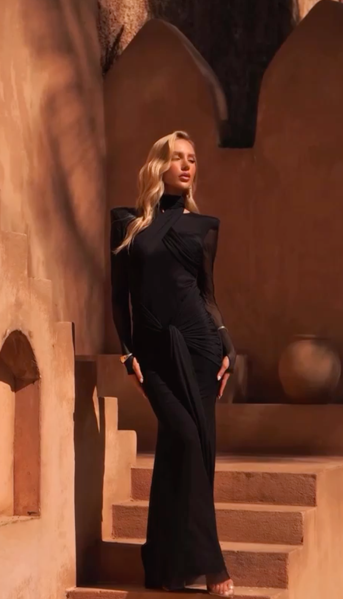 L'abito Salina combina eleganza e stile contemporaneo, caratterizzato da maniche velate in tessuto vedo e non vedo che donano un tocco sofisticato e leggero. Perfetto per occasioni speciali, questo abito esalta la silhouette con una valorizzazione raffinata senza rinunciare al comfort. Un capo versatile che unisce raffinatezza e modernità, ideale per chi cerca un look distintivo e di classe.