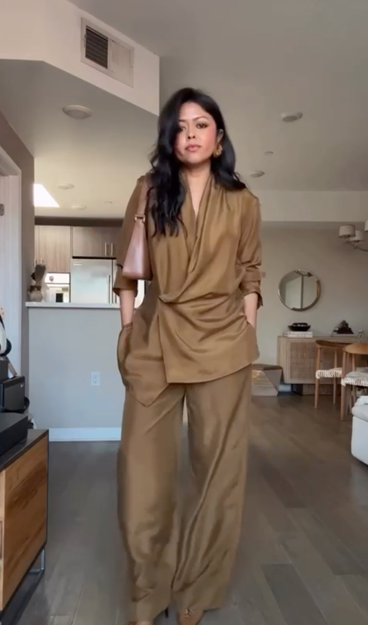 Completo Giovanna è un outfit sofisticato che unisce eleganza e stile contemporaneo. Il pantalone dal taglio raffinato si adatta perfettamente alla silhouette, mentre la camicia con chiusura laterale aggiunge un tocco distintivo e moderno. Ideale per occasioni formali o eventi importanti, questo completo garantisce comfort senza rinunciare a una presenza impeccabile.