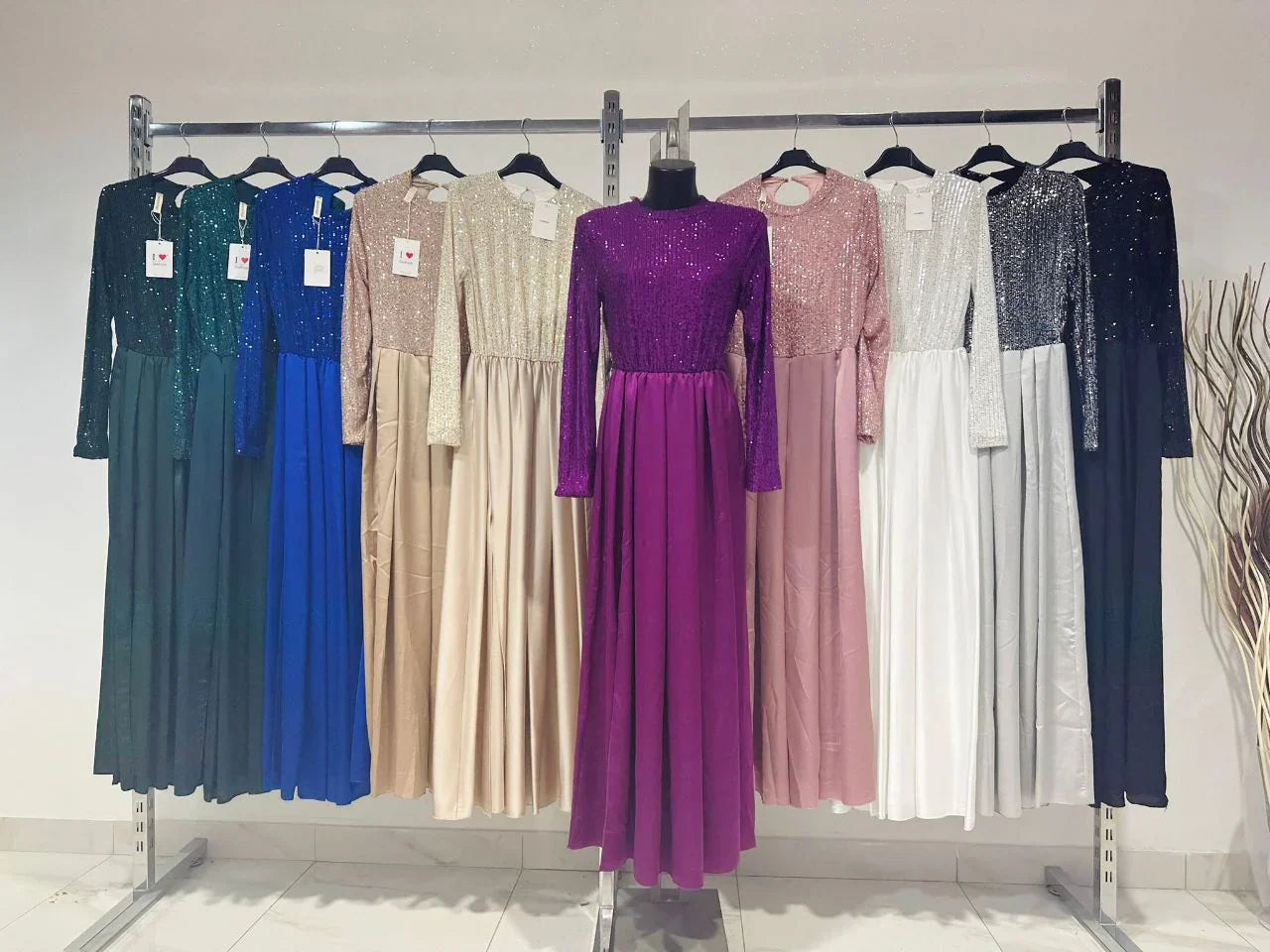 L'abito Sara è un elegante abito con maniche lunghe e paillettes che si adatta perfettamente alle curve del corpo, aggiungendo un tocco di eleganza. Lo spacco laterale rende l'abito unico e perfetto per ogni occasione.