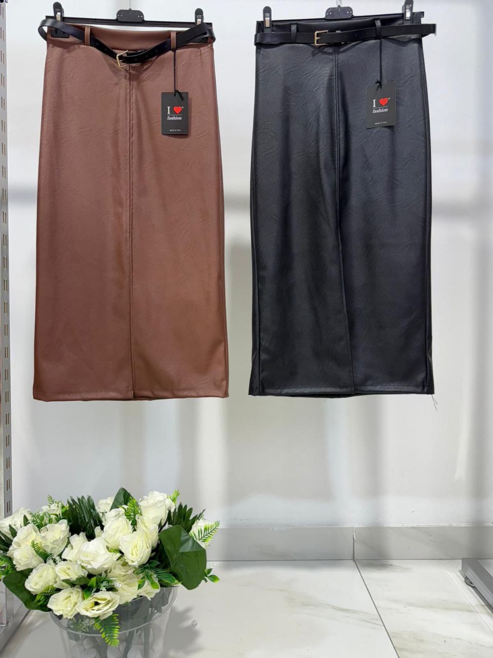 Questa gonna in similpelle unisce eleganza e sensualità in un design contemporaneo, perfetto per chi cerca uno stile distintivo. La cintura inclusa valorizza la silhouette, offrendo una vestibilità personalizzata e raffinata. Ideale per occasioni formali o serate alla moda, è un capo versatile che dona un tocco sofisticato a ogni outfit.